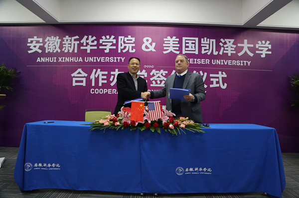 11月1日,美國凱澤大學創始人、校長凱撒博士一行來安徽新華學院洽談合作辦學相關事宜,與學院簽訂合作辦學協議,共同掀開中外合作辦學新篇章。