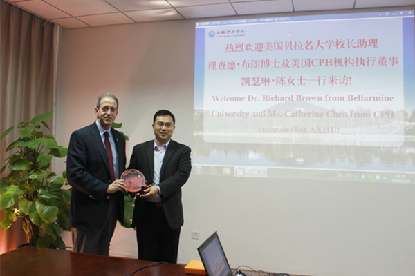 Dr. Richard Brown分別從地理位置、發(fā)展歷史、專業(yè)課程設(shè)置、國(guó)際合作項(xiàng)目開(kāi)展等方面介紹了美國(guó)貝拉名大學(xué)的情況。他表示,很高興來(lái)到美麗的安徽新華學(xué)院,希望能夠通過(guò)此次訪問(wèn),推進(jìn)兩校之間國(guó)際合作項(xiàng)目的開(kāi)發(fā)。