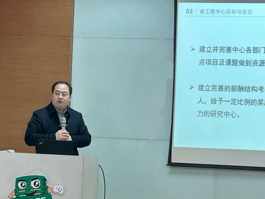 會上,研究中心主任周總就江蘇省綠色智能包裝工程技術研究中心的基本情況及后續的目標與定位、團隊建設及人才培養、主要研究方向及任務考核做了詳細的介紹。