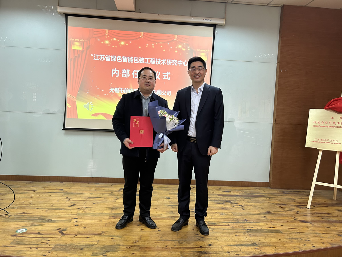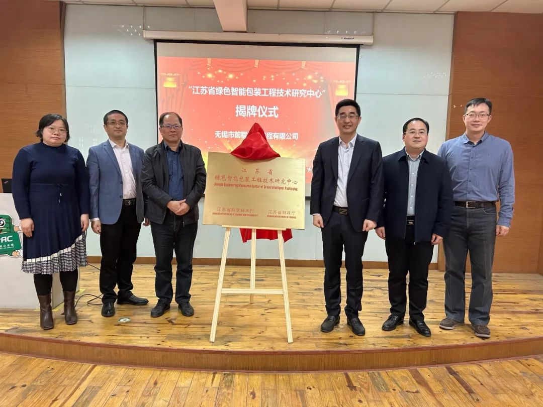 隨后徐穎總經理與行業專家及教授們共同為“江蘇省綠色智能包裝工程技術研究中心”揭牌,并為專家教授團隊及研究中心主要負責人授聘書。